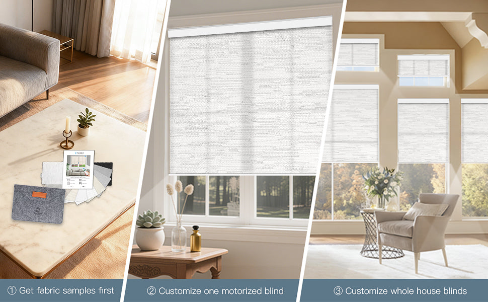 - Made to Order: The Tokblind motorized roller shade is fully customizable. Requesting a fabric sample beforehand will ensure you select the perfect shade for your space.