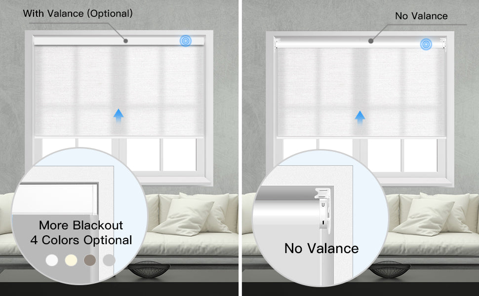 Choose a Valance to prevent light leakage from the top. Four metal Valance color options are available.
