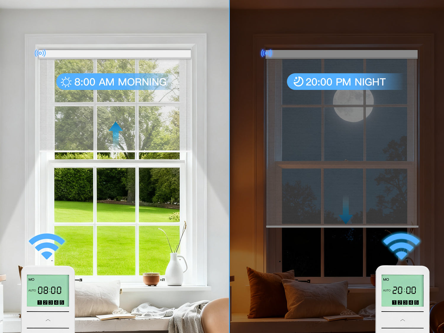 The optional shade timer remote lets you set precise open and close schedules, with smart control for a more convenient daily routine.
