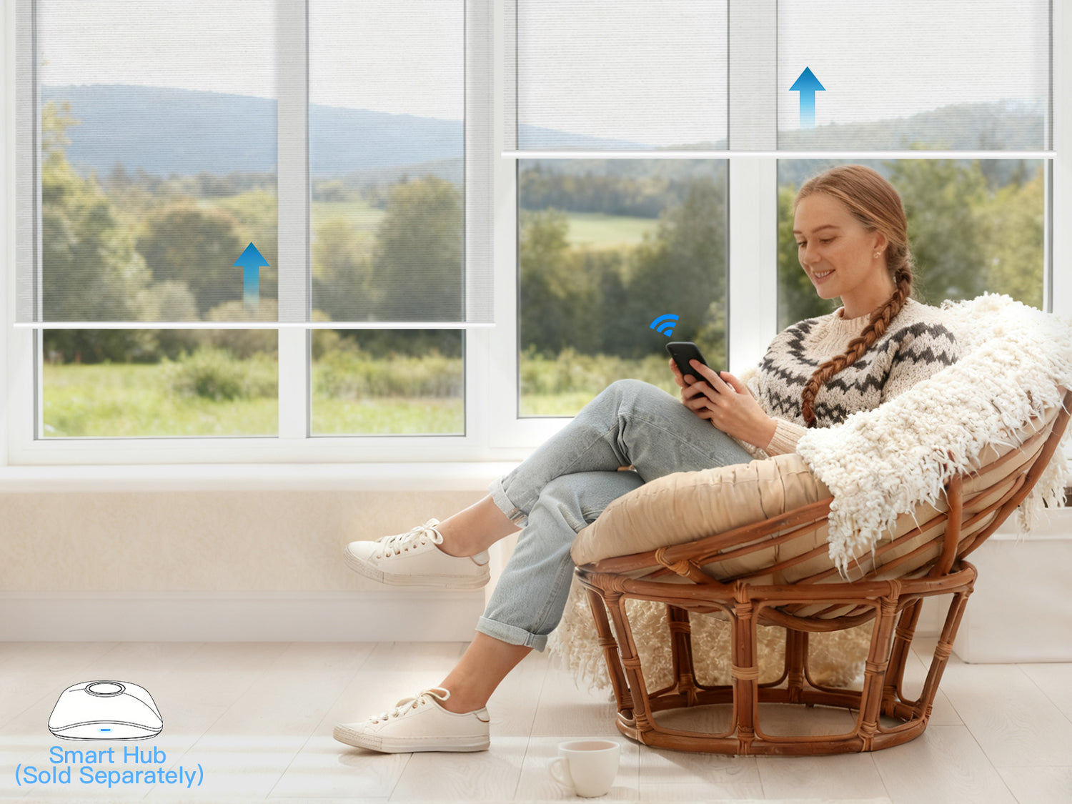 By connecting the shades through a HUB, you can control them remotely via your phone.