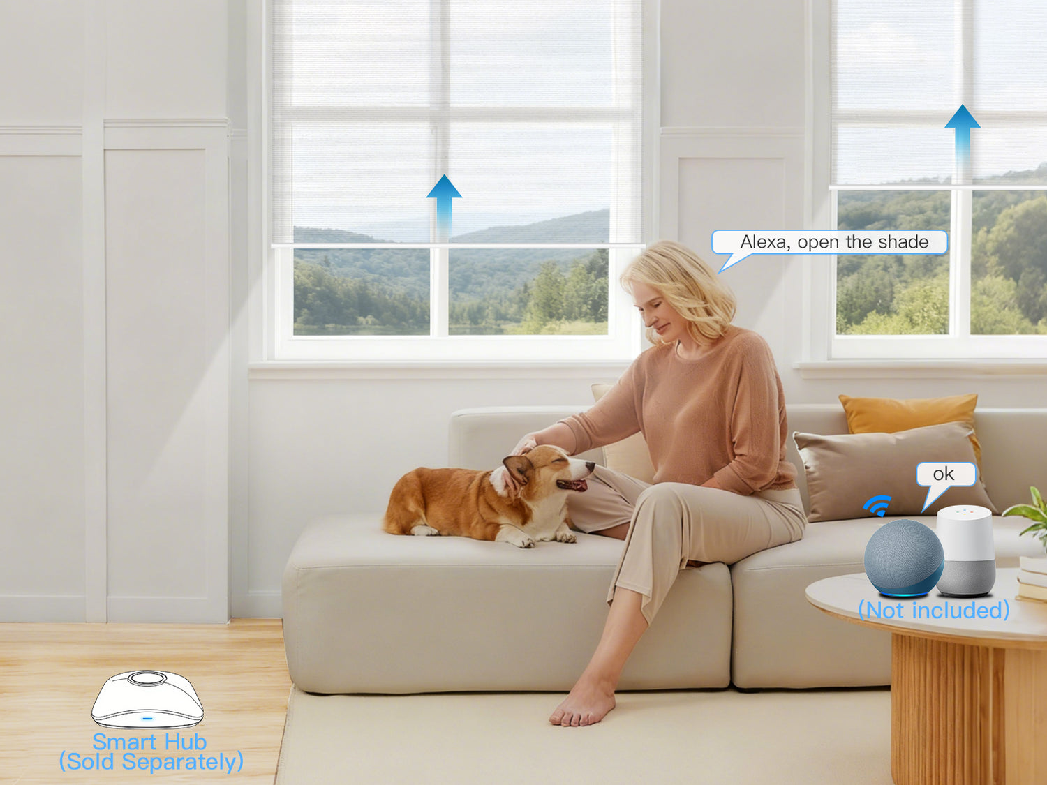 By connecting the shades to Alexa via a HUB, you can control the shades using voice commands.