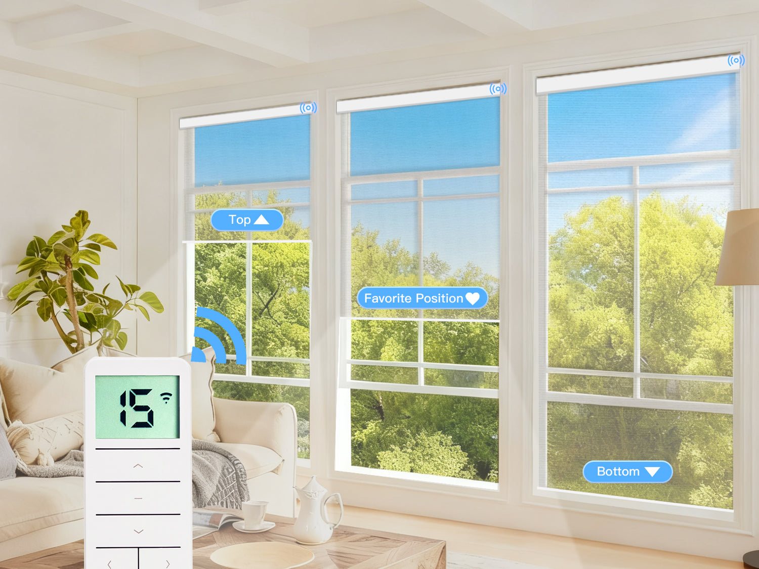 - 15-Channel Remote: Controls up to 15 blinds independently or simultaneously—ideal for multiple blinds.
