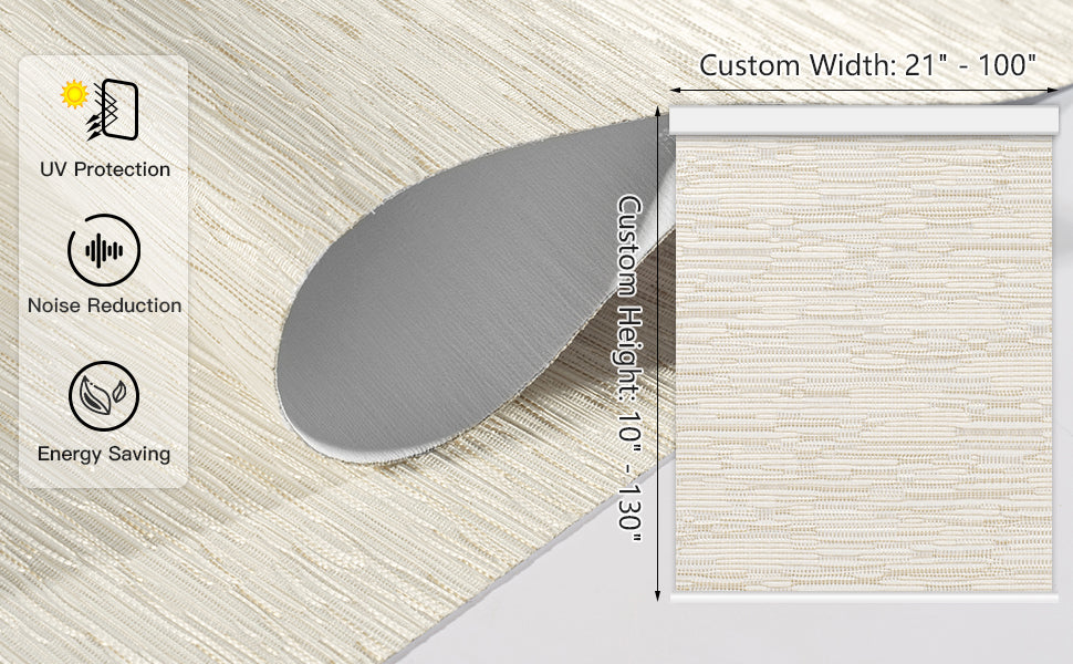 耐久性のある遮光ポリエステル生地は、自然光を100%遮断し、紫外線を軽減し、プライバシーを守ります。色選びに迷われた場合は、生地サンプルをご購入いただくことをおすすめします。